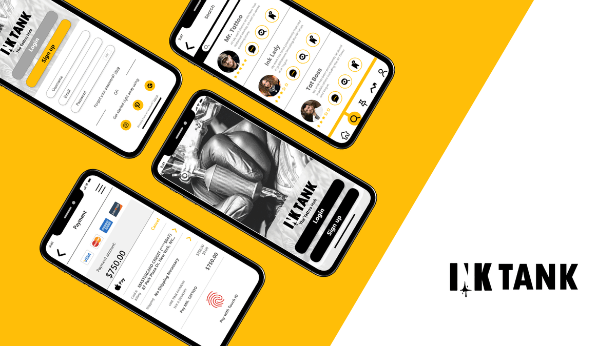 Finally, we arrived at the approved completed screens. Initially, the splash screen was going to have text and icons that gave the user a brief overview of the app. However, it was changed to a close-up image of a tattoo in progress. We made this change to fit the genre of the tattoo culture. This change was validated by comments made by participants during the Preference Testing.